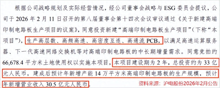2月13日,沪电股份发布了扩产公告。